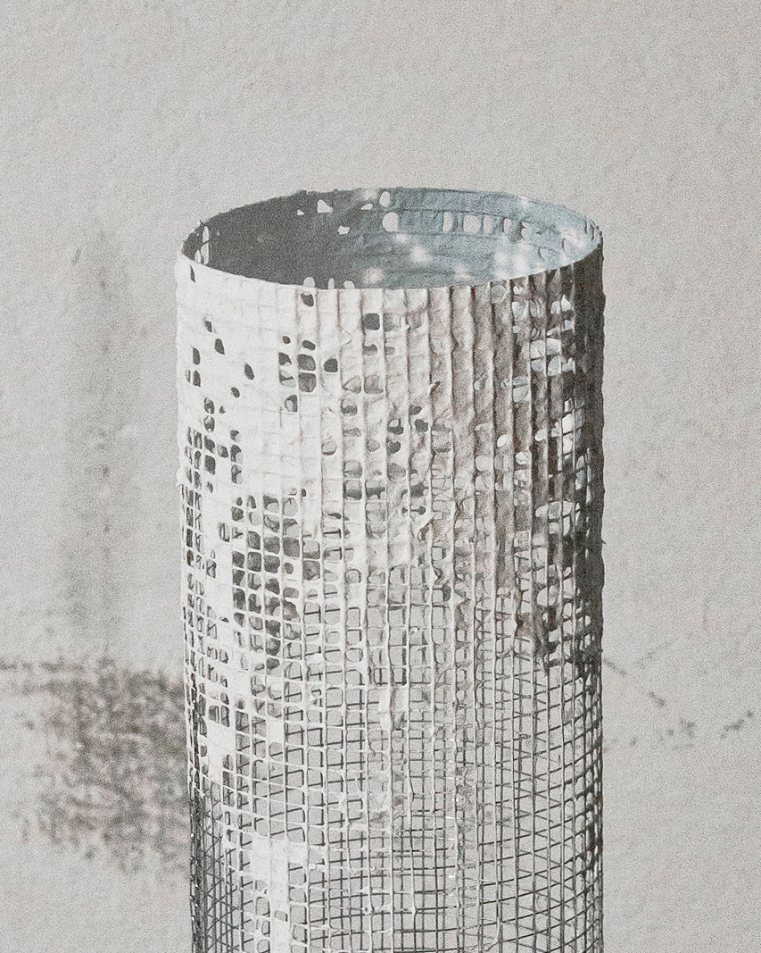 wire mesh (galvanized), egg (blown), papmache, paint;
